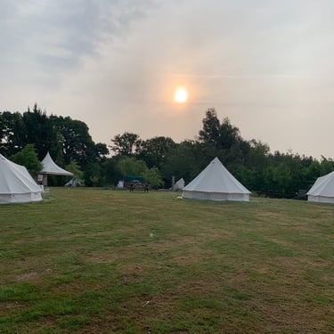 Hire a Glamping Tent in the beautiful exclusive Glamping Field around the Dragonfly Pool during the week* for £100 per night. This includes access to the Camp Kitchen, hot tub and sauna. Glamping Tents have two camp beds with bedding and space for two sleeping mats for children (bring your own),
