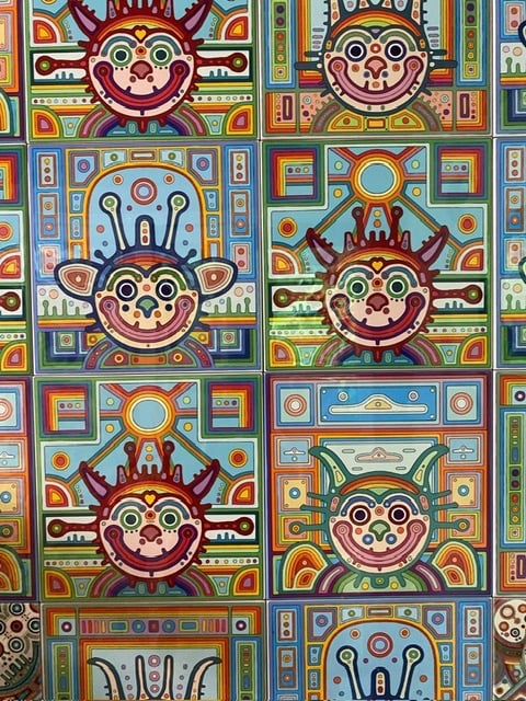 Facilities include a camp kitchen and a shower and toilet block with hot water and the psychedelic art of Harry Pack, reminiscent of Terrence McKenna's multi-dimensional elves.